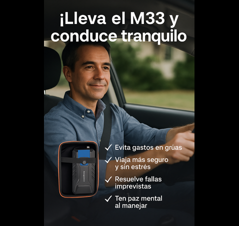 El M33 es compatible con automóviles, motocicletas, SUV y vehículos con baterías de 12V. Su potencia de arranque de 1000A lo hace ideal para una amplia gama de motores a gasolina.